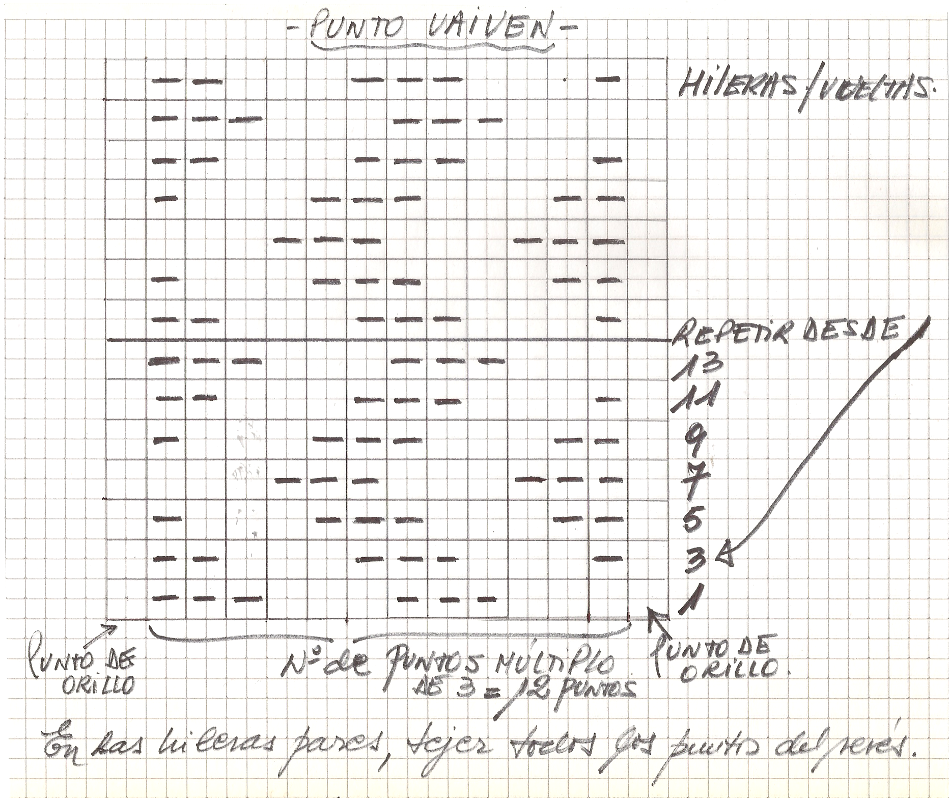 Si les entusiasma la idea de aprender a tejer este dibujo de punto, a continuación les dejo el gráfico, como para que lo vayan conociendo.
